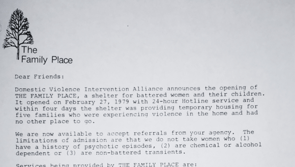 DVIA opens The Family Place, the first shelter for battered women and children in Texas.